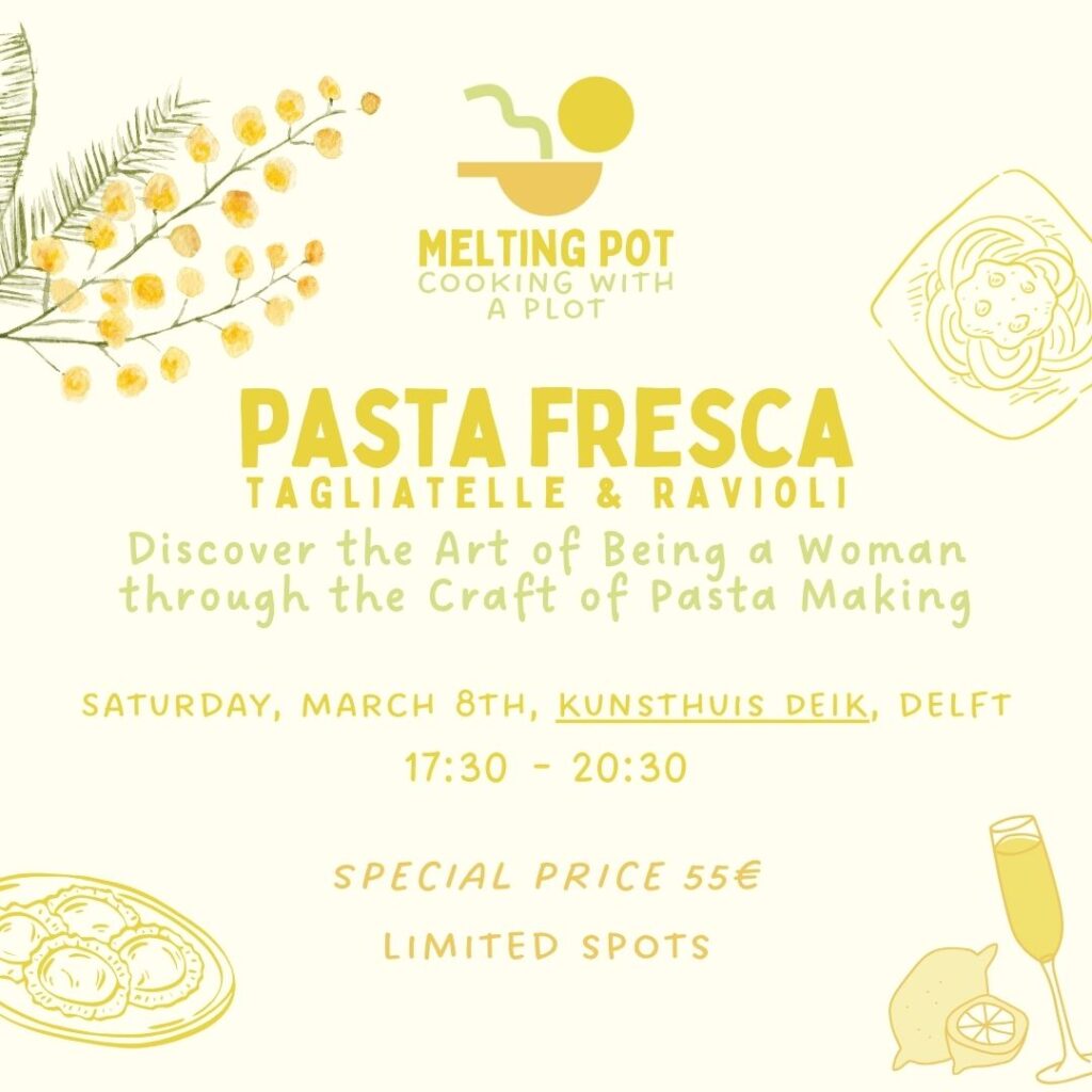 Vier Vrouwendag met een unieke ervaring! We maken samen verse tagliatelle en ravioli vanaf de basis, terwijl we in gesprek gaan over wat het betekent om vrouw te zijn. De kunst van het pastamaken is door generaties heen doorgegeven en weerspiegelt hoe vrouwen hebben geleerd zich te gedragen—een balans tussen schoonheid, gratie en kracht. Maar wat gebeurt er als we deze voorgeschreven “recepten” loslaten en onze authentieke zelf omarmen?